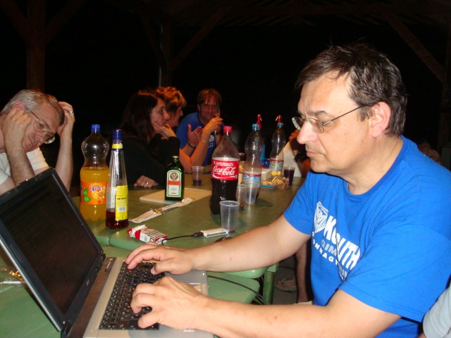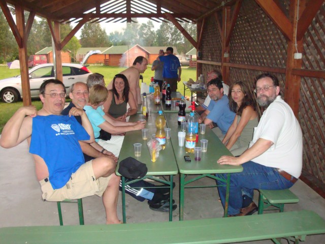 A találkozót Miki szervezte meg egy parádés strand kemping kombó helyszínen, ahová biztosította a remek időt is. Kellemes körülmények között telt a három nap, fő attrakciója a buszos és idegenvezetős Komáromi Erőd látogatás, valamint a szlovák oldalon az óvárosban megejtett sörözés és sztrapacskaevés volt. Megnéztük a szlovák oldalon felállított Szent István lovasszobrot, valamint a komáromi híd magyar oldalán felavatott Endresz emléktáblát, utóbbi létrejöttében Mikinek is fontos szerepe volt (Köszönet érte!). Ezt a napot velünk töltötte az Ofő is. Két grilles estét is rendeztünk, ahol Miki egyre jobb borával oltottuk a szomjunkat, természetesen a hajnalig tartó éneklés sem maradt el. Vasárnap egy kellemes fürdéssel zártuk a délelőttöt, és utána indult mindenki a megszokott dolgos hétköznapokba.