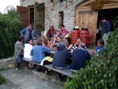 Késő délután értünk vissza, elég éhesen, de szerencsére várt ránk az elővéd csapat paprikás krumplija. Ezután a cáki borkostoló következett, most szerencsére nem gyalogosan. A borok most is kiválóak, a borkorcsolyákkal együtt, remekül itatták magukat. Estére egy tartalmas, jóleső fáradtsággal teli napot búcsuztattunk.