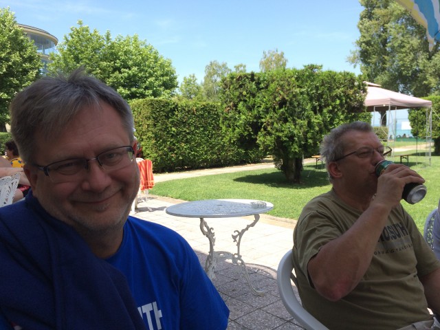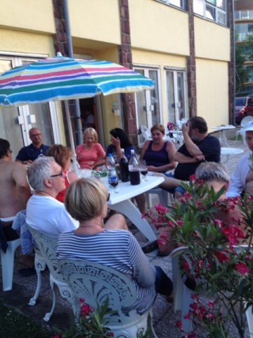 Miki szervezte meg a "lustaság fél egészség" elve alapján egyszerre az egyetemi és gimis találkozót, ami a vártnál jobban sikerült. Bár meglepődtünk először a sok idegen idős bácsi és néni láttán, de a kölcsönös rácsodálkozás rádöbbentett bennünket, hogy mi is..... A Balaton változatlanul csodás volt, a szervező(k) többféle programot ajánlottak. (Erdei (?) túra, kirándulás Tihanyba, fürdőzés, ejtőzés helyben.) A két csapat 94%-a -korukra való tekintettel az utóbbit választotta, a fiatalos 6% bevállaltuk Tihanyt. Attila ismét remekelt, a hangulat pedig, ahogy akartuk, nagyon jó volt. A képes illusztrációkat is feltöltöm, de a képminőségre nem vagyok büszke.